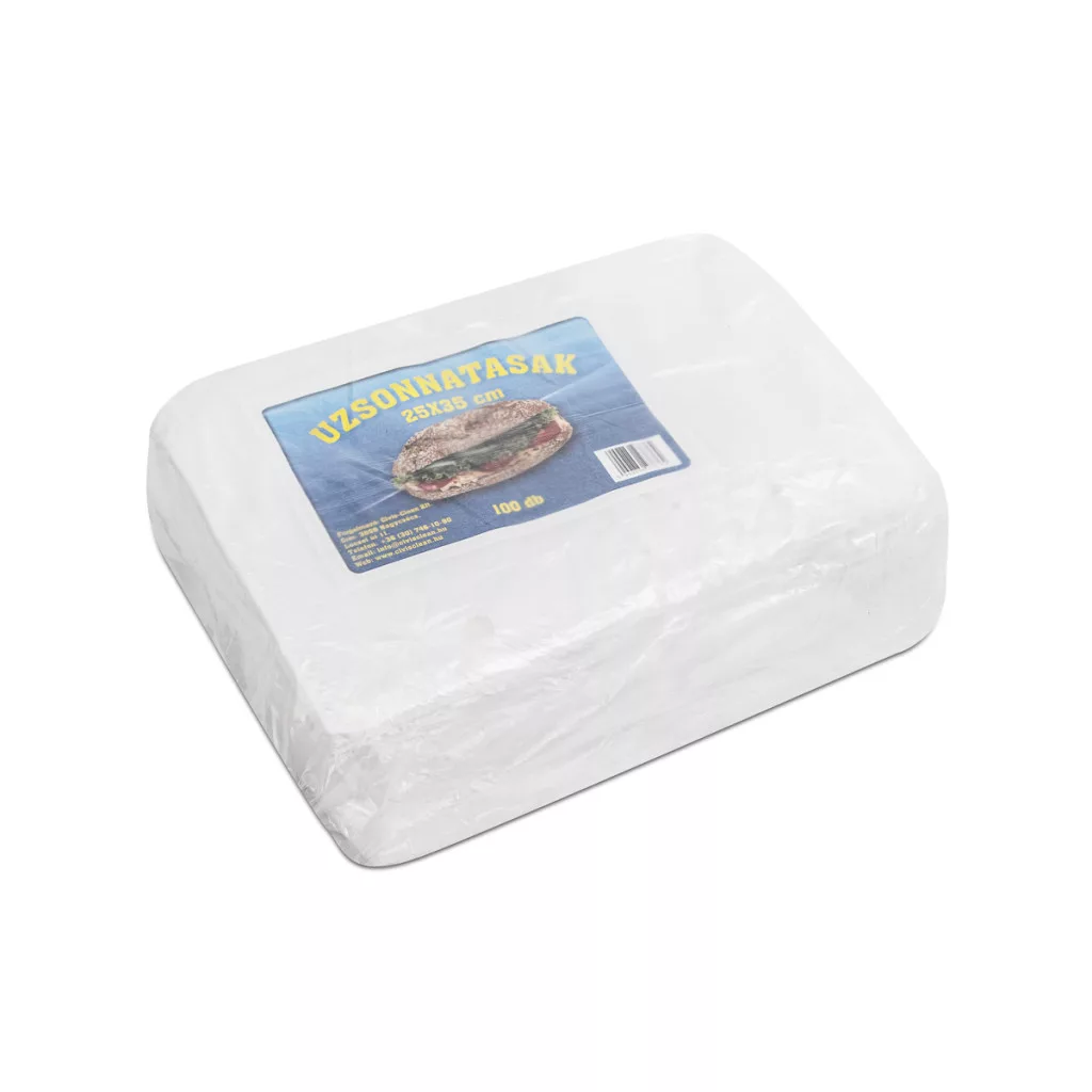 250×350 miliméteres PE tasak, 100 tasak/hajtás, 8mic.