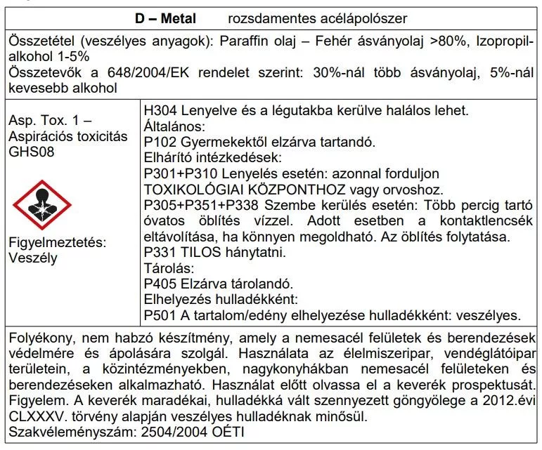D-Metál nemesacél ápoló, 800g, szórófejjel