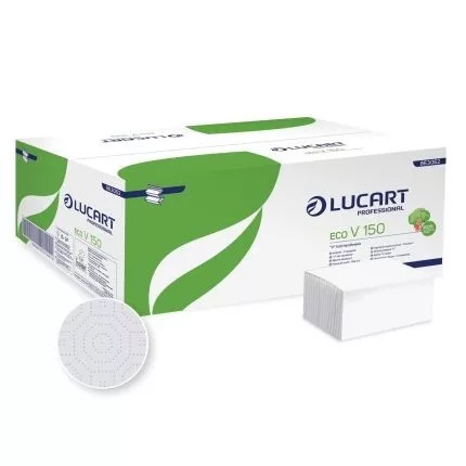 Lucart Eco V 150, V hajtott kéztörlő, 2r.,fehér, 150lap/cs.,20cs./kart.
