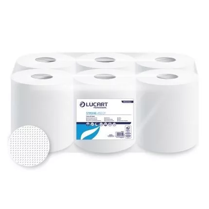 Lucart Strong 450 CF belső adagolású tekercses törlő, 2r., cell., 450lap/tek., 6tek./zsugor